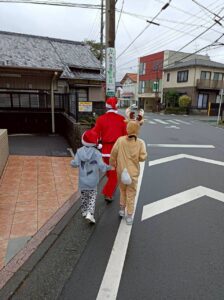 地域の方からのやさしい言葉に、照れながらも嬉しそうな子どもたち。