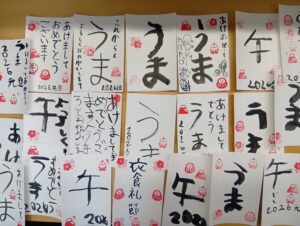 「うま」「午」「あけましておめでとう」などの文字に挑戦。